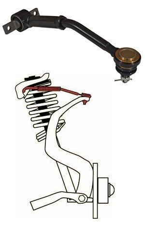 These arms correct rear camber on vehicles that have been lowered up to 3.0 inches with an adjustment range of -2.0° to +3.5°. The "bent" design of the arm gives extra clearance. 67265 comes with a non-directional ball joint preinstalled.