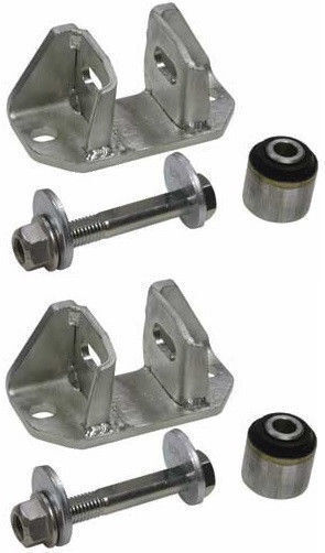 This rear bracket and bushing replaces the stock mount on '06 and up Honda Civics. By rotating the eccentric bolt/cam assembly in the bracket, you can get +/- 1.25 deg. of rear camber change.